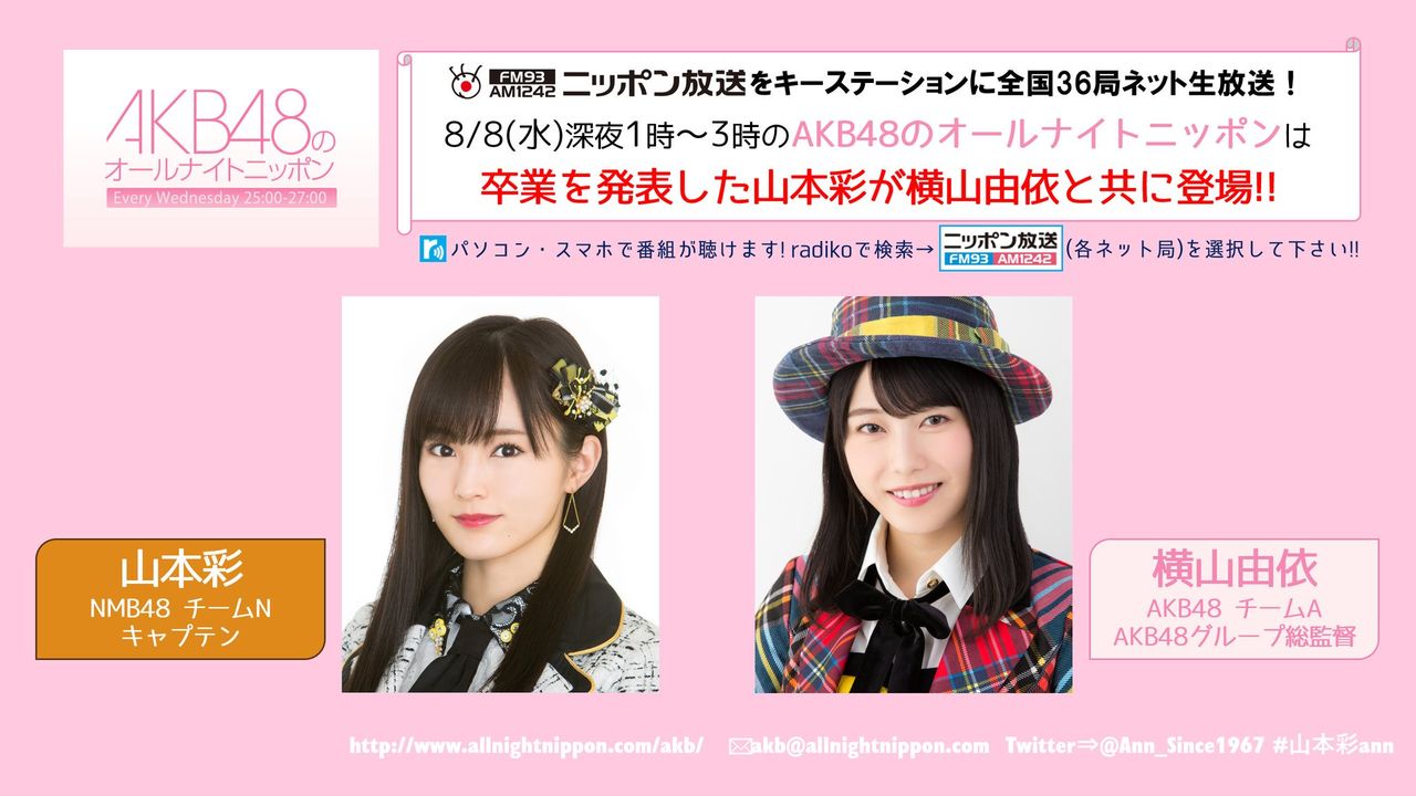 今週のAKB48のオールナイトニッポンに、山本彩と横山由依が登場